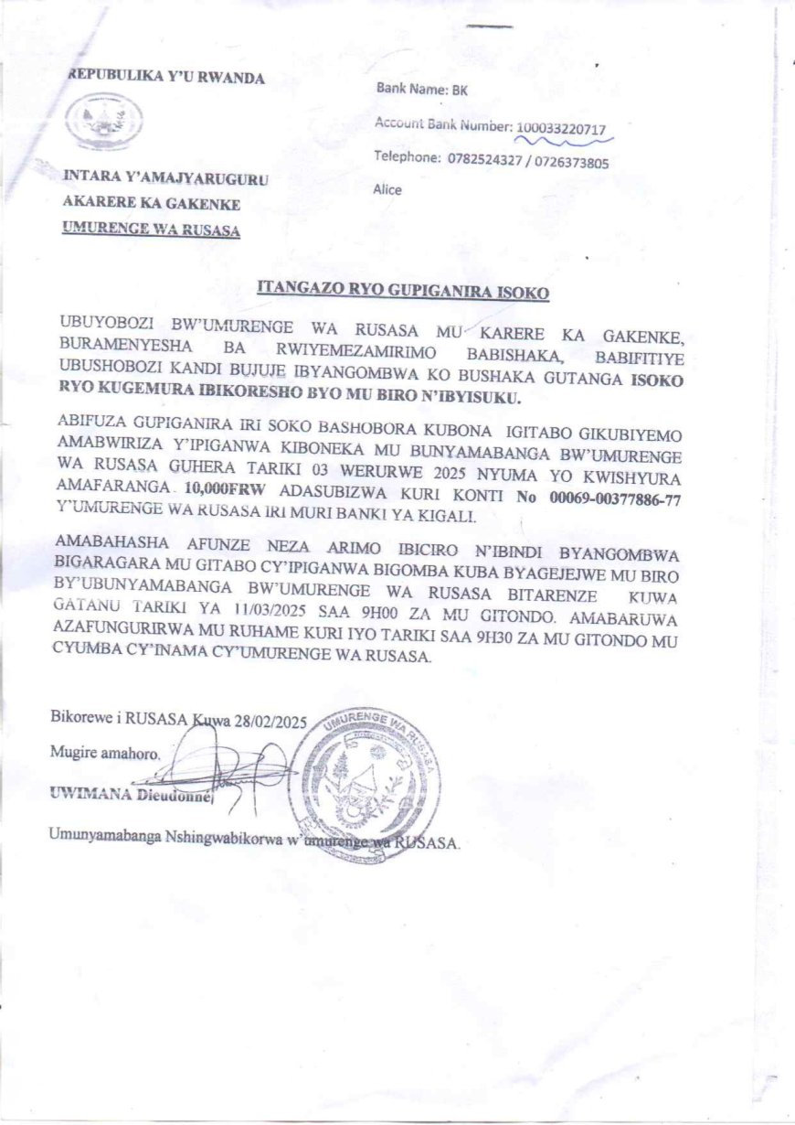 ITANGAZO RYO GUPIGANIRA ISOKO